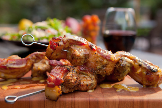 Pincho de cerdo envuelto en panceta
